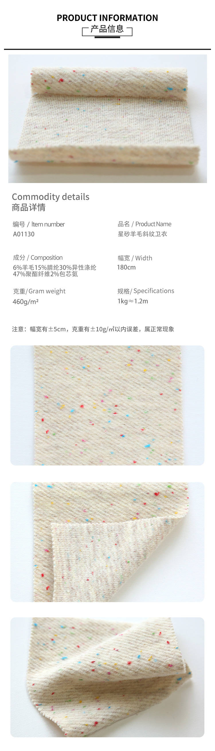 • 成份含量:6%羊毛15%腈纶30%异型涤纶47%聚酯纤维2%包芯氨