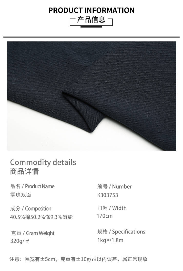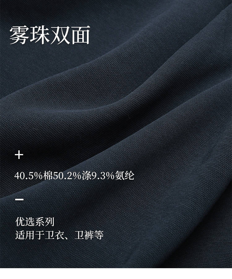 • 成份含量:40.5%棉50.2%涤9.3%氨纶
