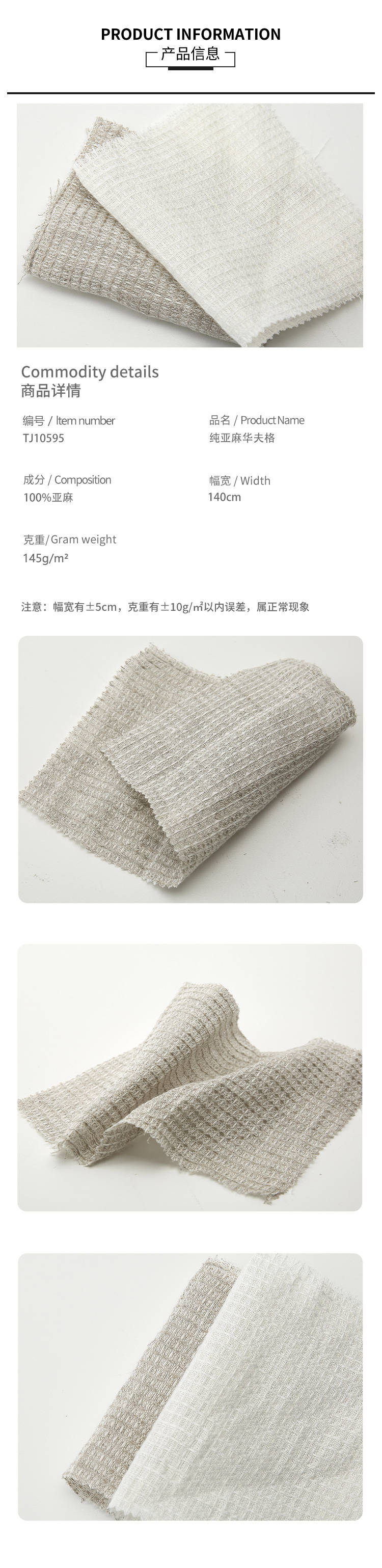 • 成份含量:100%亚麻