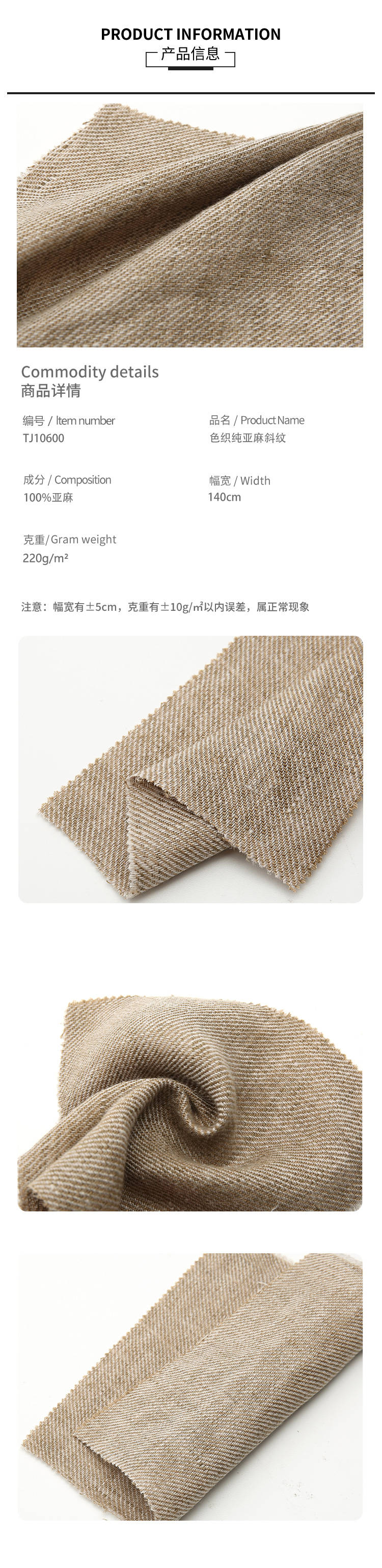 • 成份含量:100%亚麻