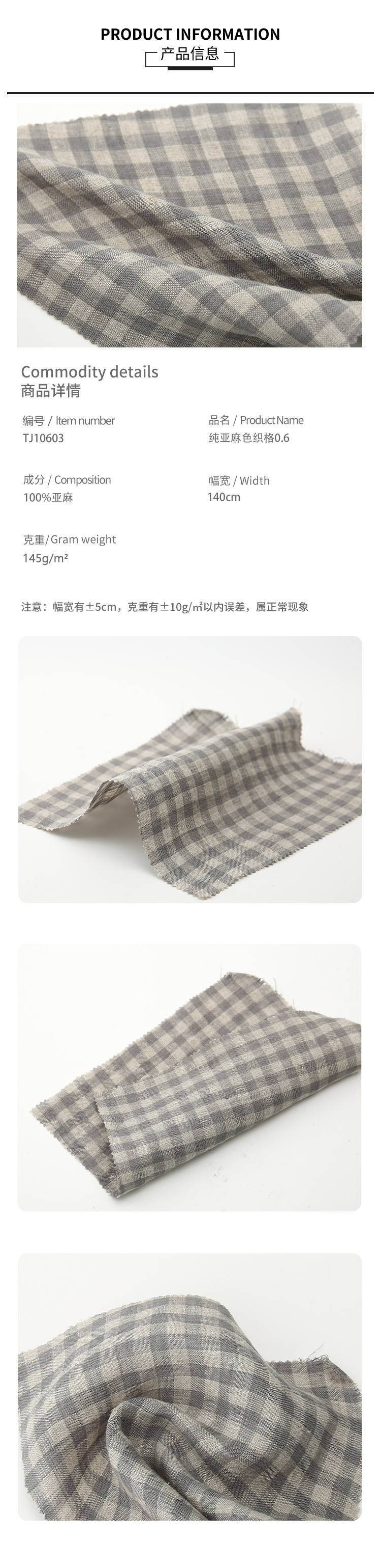 • 成份含量:100%亚麻