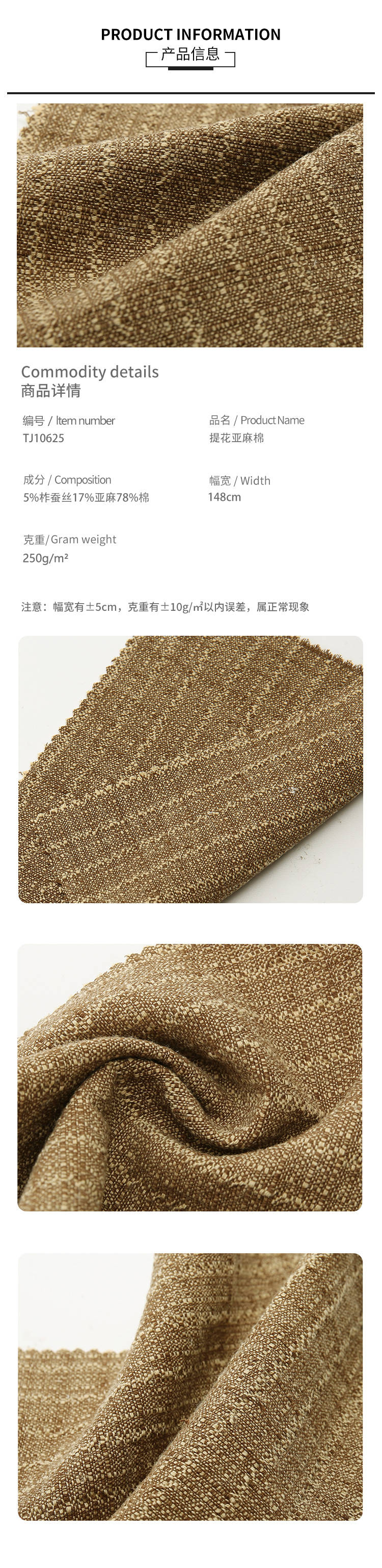 • 成份含量:5%柞蚕丝17%亚麻78%棉