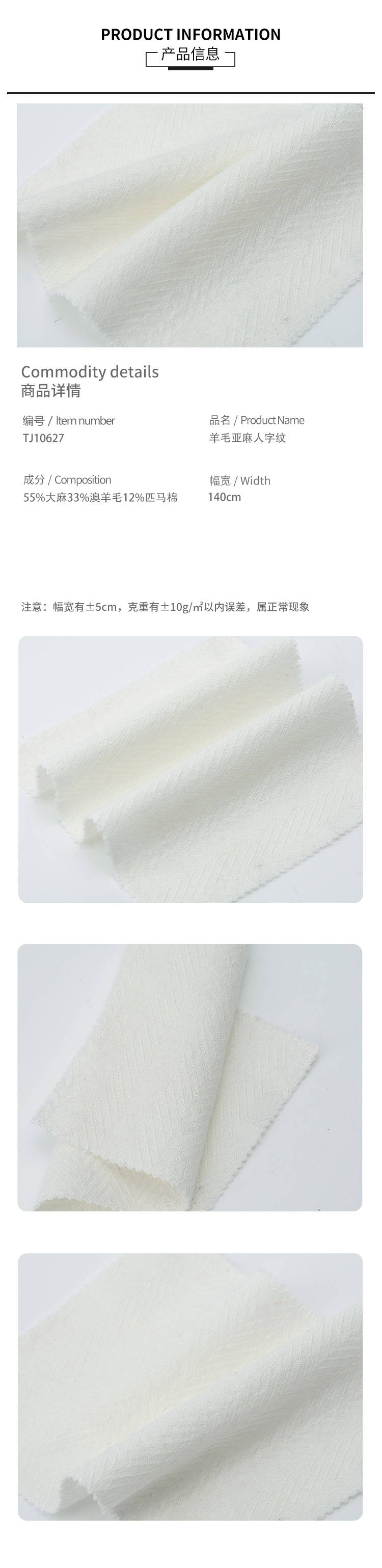 • 成份含量:55%大麻33%澳羊毛12%匹马棉