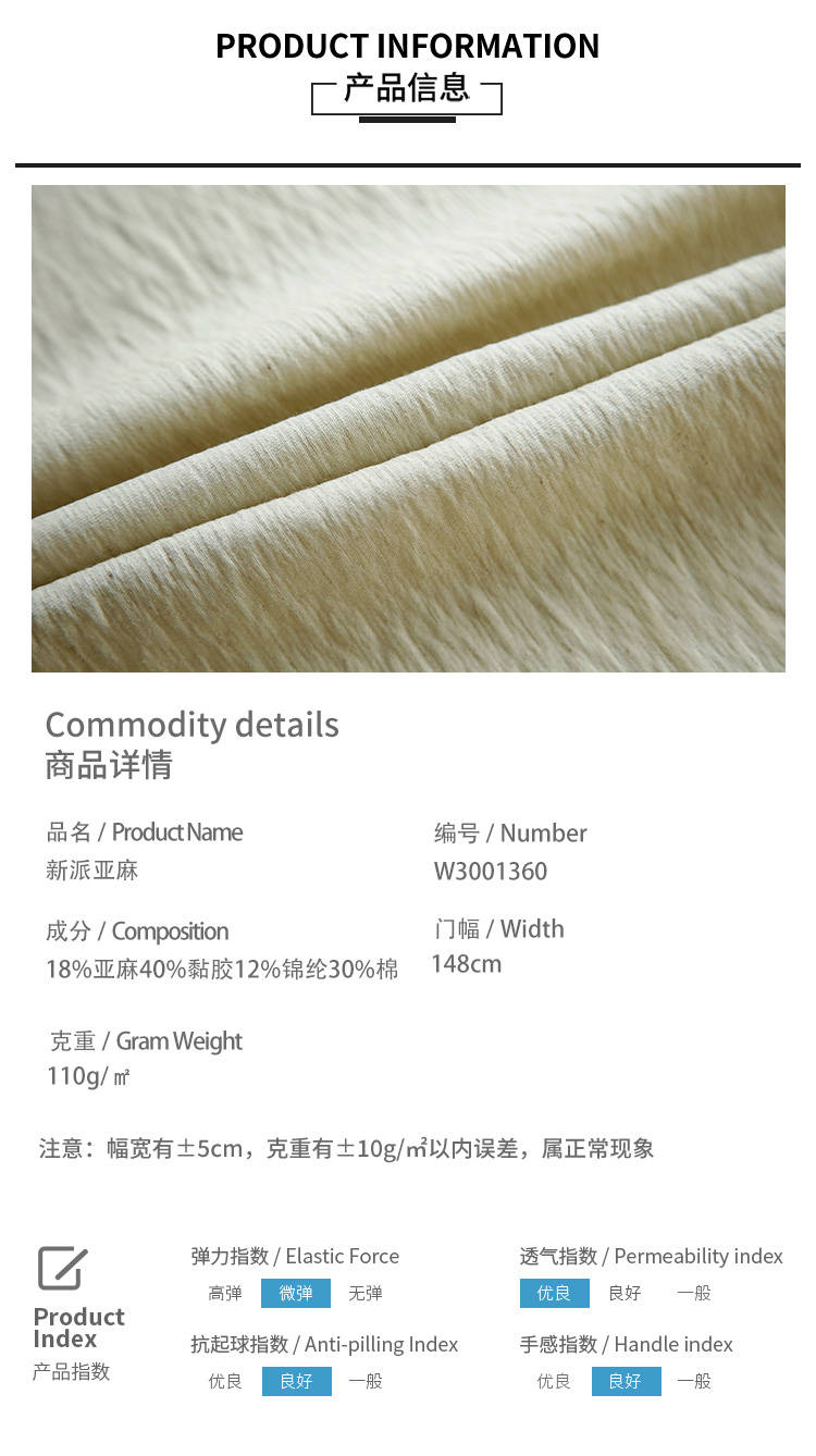 • 成份含量:新派亚麻