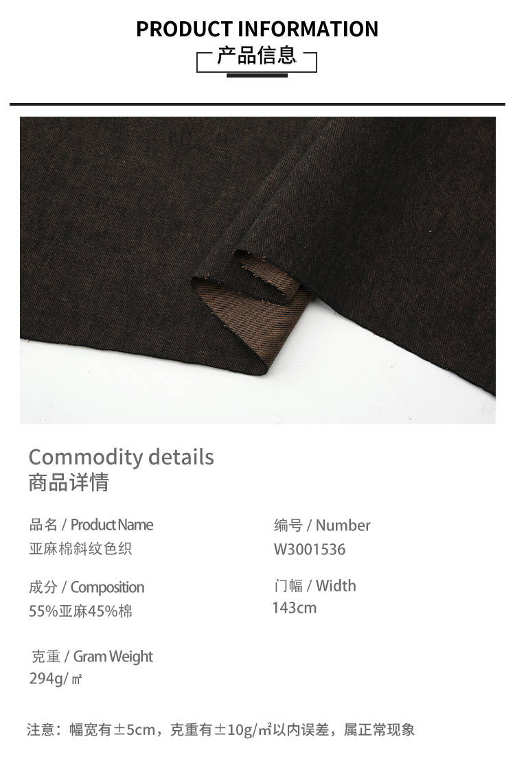 • 成份含量:55%亚麻45%棉