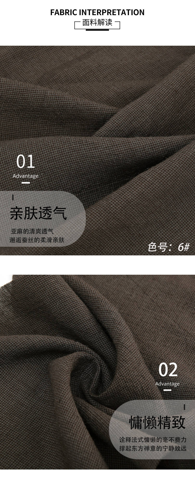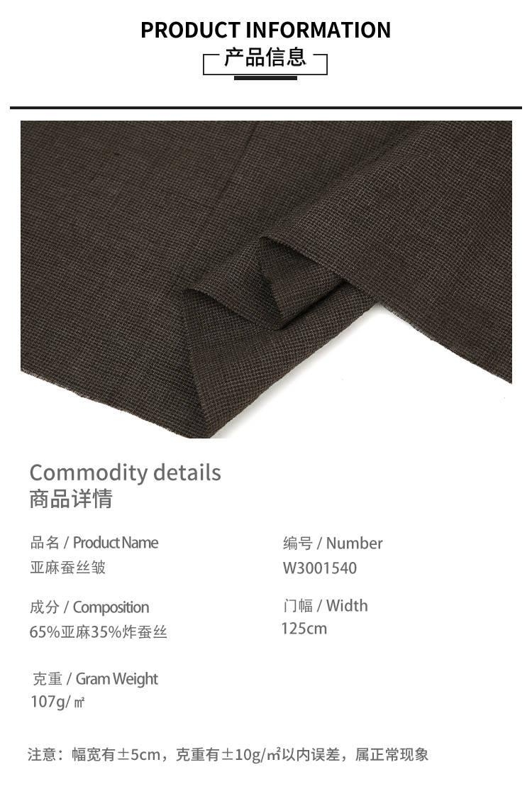 • 成份含量:65%亚麻35%炸蚕丝