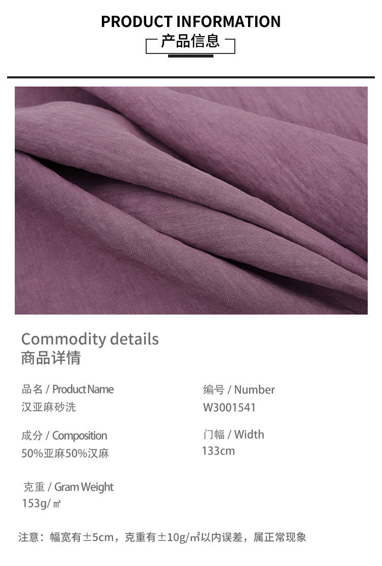 • 成份含量:50%亚麻50%汉麻